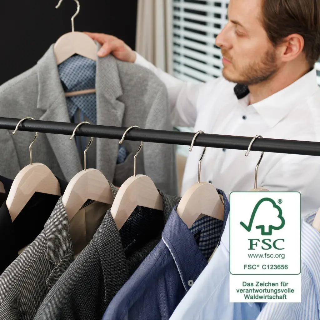Holz ist mehr als ein Material – es ist ein Statement für Qualität, Beständigkeit und Nachhaltigkeit. MAWA Holzbügel verbinden diese Eigenschaften mit modernem Design und höchsten Ansprüchen an Funktionalität. Hergestellt aus FSC®-zertifiziertem Holz (FSC-C123656), steht jedes Stück für verantwortungsbewusste Produktion und den Schutz unserer Wälder.